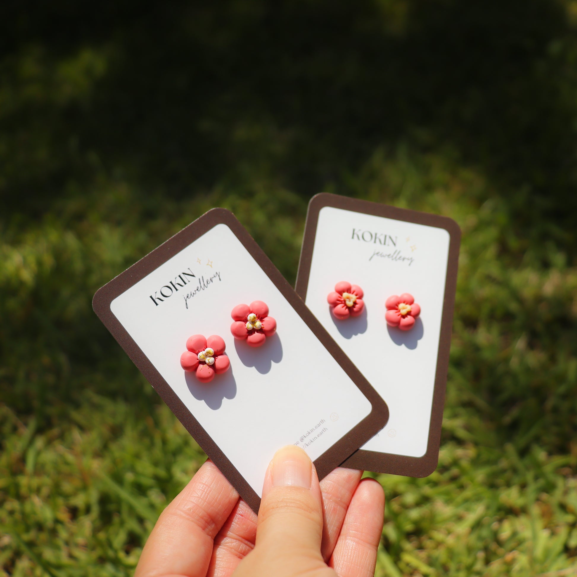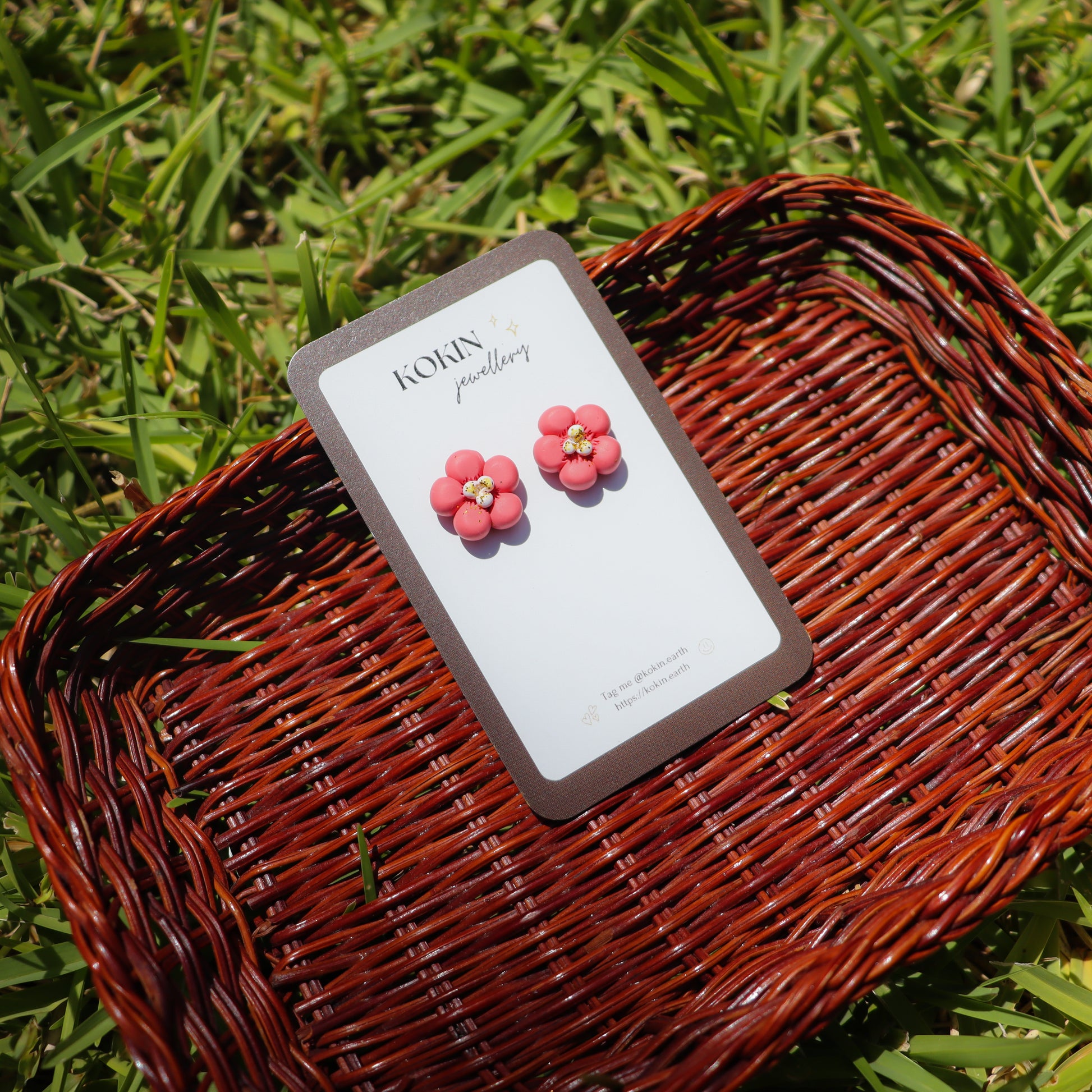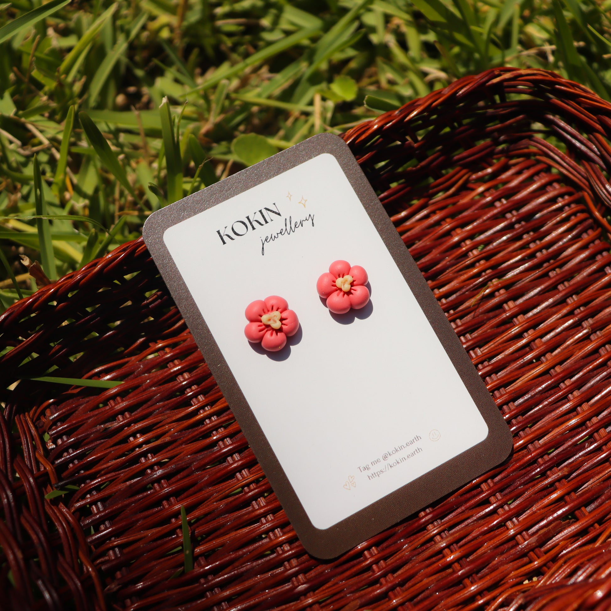 - small studs with pink plum blossom (=UME in Japanese)